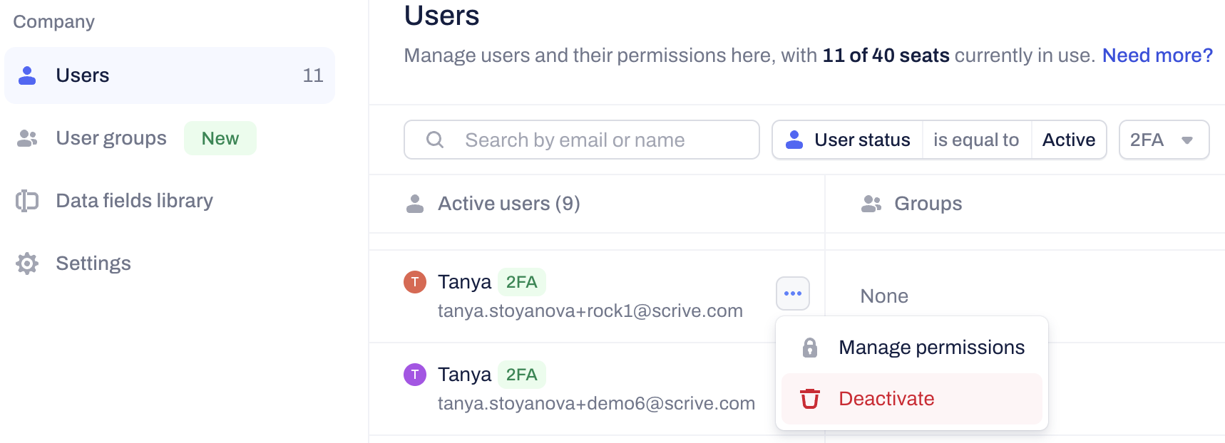 Why deactivation? Deactivating a user ensures the company retains access to all documents and templates created by that person.