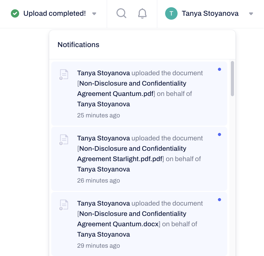 Customize your email and in-app notifications to stay updated on your contract workflows. Note that you can only configure notifications for your own account, not for your teammates.