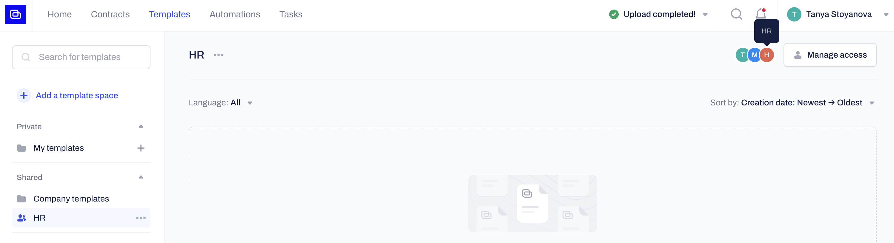 Learn how to populate shared Spaces with contracts and templates to collaborate efficiently with other Users in your company.